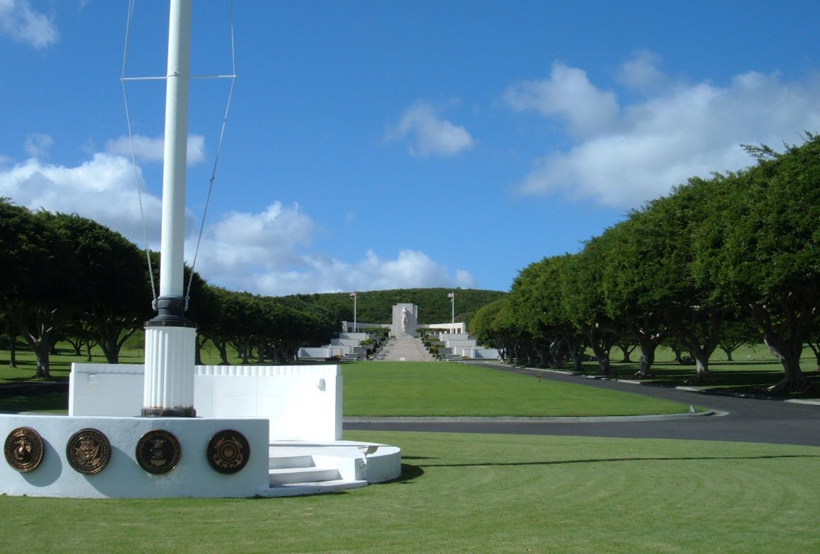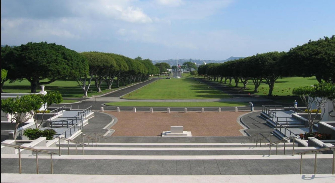 The cemetery was built after World War II to accommodate servicemen’s remains from across the Pacific Theater, transporting bodies from places like Guam and prisoner of war camps to Hawaii for burial. The cemetery features carefully landscaped grounds with flat granite headstones and memorials, including the Honolulu Memorial dedicated to those missing in action. It stands as a solemn tribute to the sacrifices of military personnel and is listed on the National Register of Historic Places.