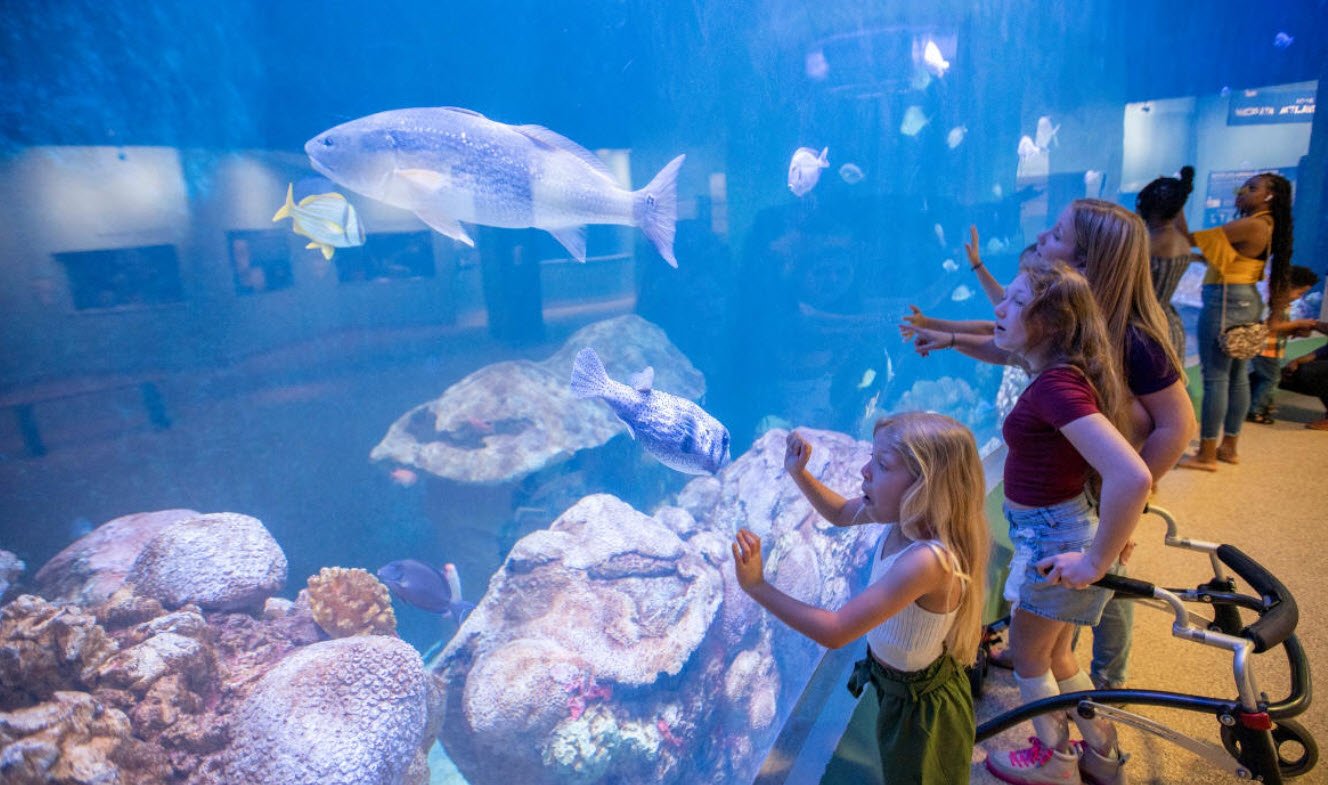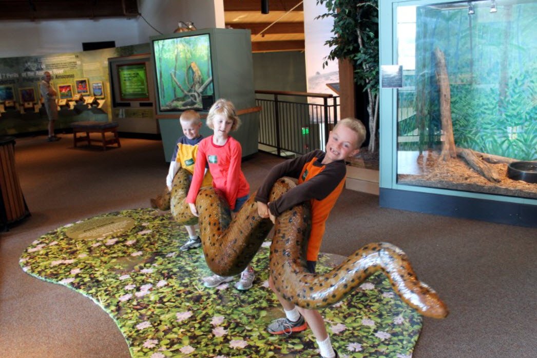 The riverfront campus includes two main buildings with interactive displays, over a dozen aquariums housing species like giant catfish, sturgeon, stingrays, river otters, and even octopuses, plus outdoor habitats featuring raptors and wetlands. Visitors can explore historic boats, a blacksmith shop, and a train depot, as well as attend educational programs and 3D/4D theater presentations.
