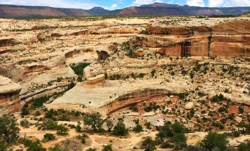 The monument’s landscape features desert vegetation like piñon pine and juniper, alongside a unique high-desert riparian environment supporting rare plant and animal species. Visitors today can explore hiking trails that lead to the natural bridges and ancient ruins, experiencing both the geological marvels and the rich cultural history preserved at this iconic Utah landmark.