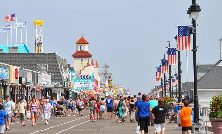 Founded in 1879 by Methodist ministers as a dry town prohibiting alcohol sales—still enforced by local vote—it features eight miles of guarded beaches, a famous 2.5-mile boardwalk packed with shops, eateries, amusement rides, mini-golf, and a waterpark, drawing summer crowds up to 115,000 from its year-round population of around 11,500.