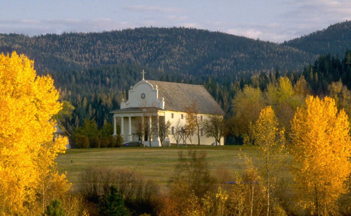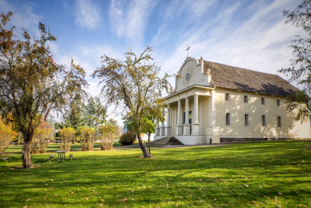 Old Mission State Park in Idaho is notable for housing the oldest building in the state, the Mission of the Sacred Heart, built between 1850 and 1853 by Catholic missionaries and members of the Coeur d’Alene Tribe.