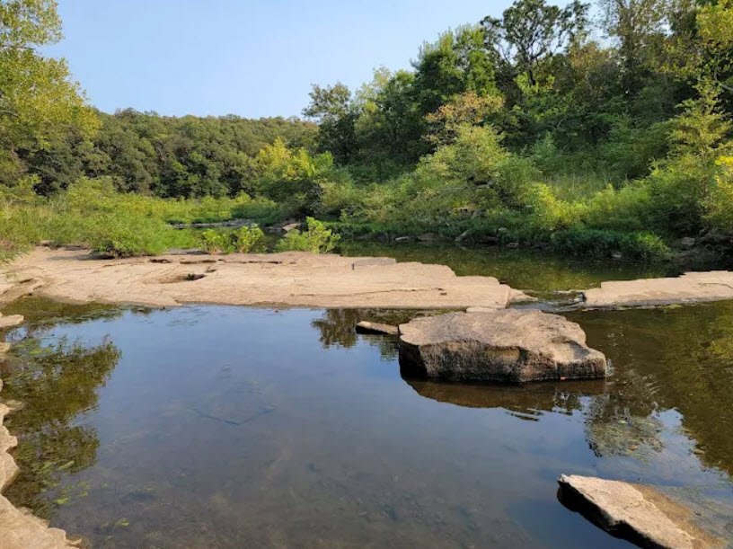 Osage Hills State Park covers 1,100 acres of rolling hills, lush forests, rocky bluffs, and serene waters in eastern Osage County near Pawhuska and Bartlesville, Oklahoma, USA.