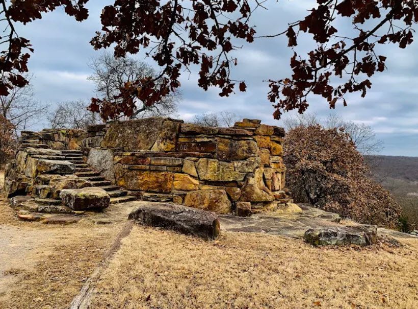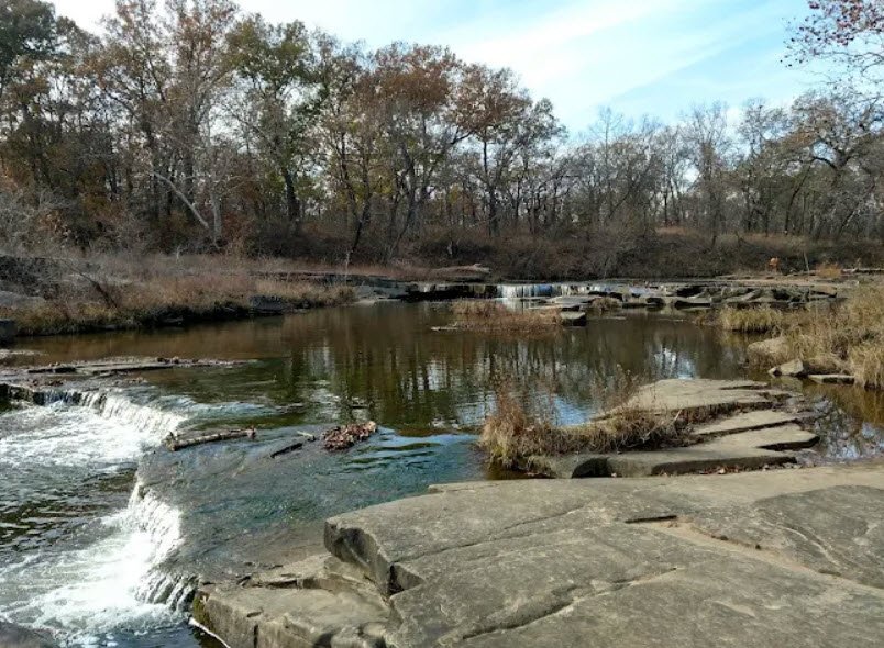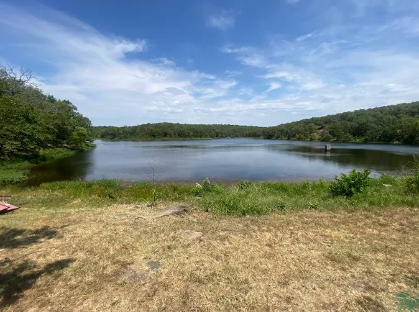 One of Oklahoma's original seven parks built starting in 1935 by the Civilian Conservation Corps, it features historic stone structures like cabins and an amphitheater, plus 20 semi-modern RV campsites, 16 tent sites, eight cozy cabins, picnic shelters, a swimming pool, tennis courts, ball fields, and miles of hiking/mountain biking trails including the popular Tower Lake Loop and scenic Falls Trail to a waterfall on Sand Creek.