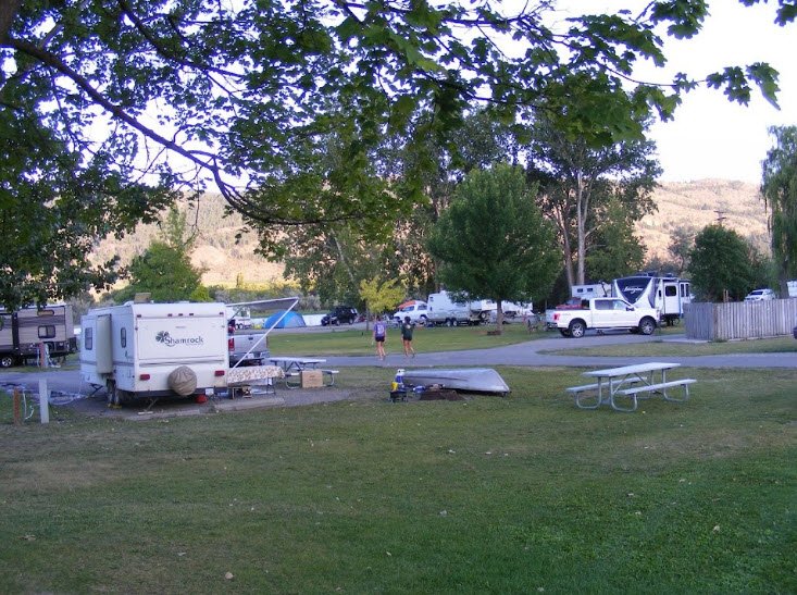 Formerly a state park sold to the city of Oroville, it contrasts the arid Okanogan region's cliffs with lush lawns, shade trees, and sandy beaches, honoring veterans through memorials donated by local groups. Amenities include 41 standard sites, 39 RV utility sites with power and water, 12 primitive walk-in spots, two boat launches.