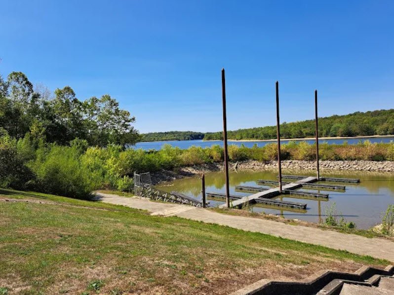 Nestled at the Appalachian Plateau's edge with limestone bluffs, gorges, and rare wildflowers like Sullivantia and Smooth Cliffbrake ferns, it offers boating, swimming, excellent fishing for bass and crappie, 25 miles of equestrian trails, 12 miles of mountain biking paths, and over 200 wooded campsites.