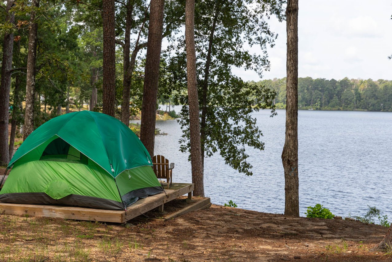 Visitors can stay in cabins, villas, or campgrounds featuring both primitive and developed sites. The park also includes facilities like a conference center, picnic areas, a chapel, and a newly renovated camp store. With scenic rolling hills, loblolly pines, magnolias, and colorful seasonal flowers, it provides year-round enjoyment.