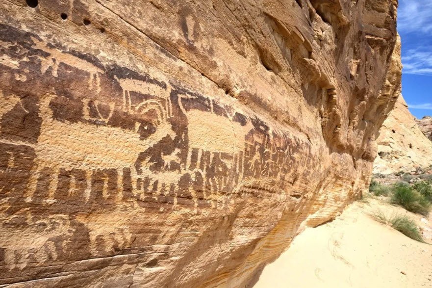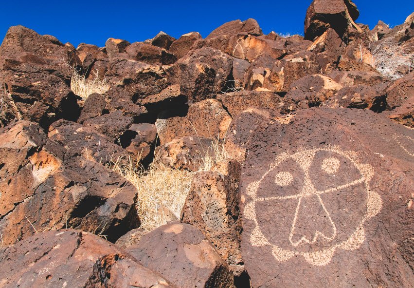 The petroglyphs depict animals, people, crosses, and complex symbols, holding deep cultural and spiritual significance for traditional communities and allowing visitors to explore ancient art and natural landscapes through several accessible trails such as Boca Negra Canyon and Rinconada Canyon.