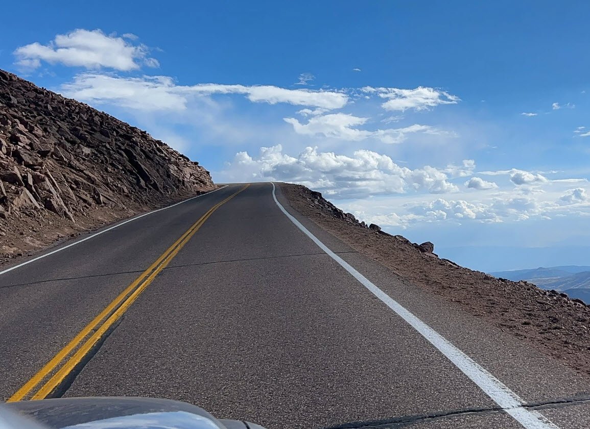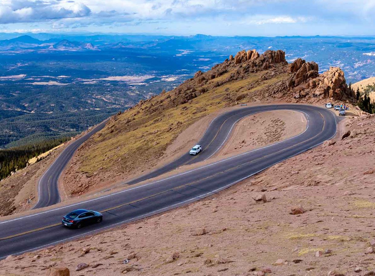 The highway is famous for hosting the annual Pikes Peak International Hill Climb, a challenging motorsport race where drivers compete on the winding road with its 156 turns and significant elevation gain. The road was gravel for many years but was fully paved by 2011 after environmental concerns, improving safety and sustainability.