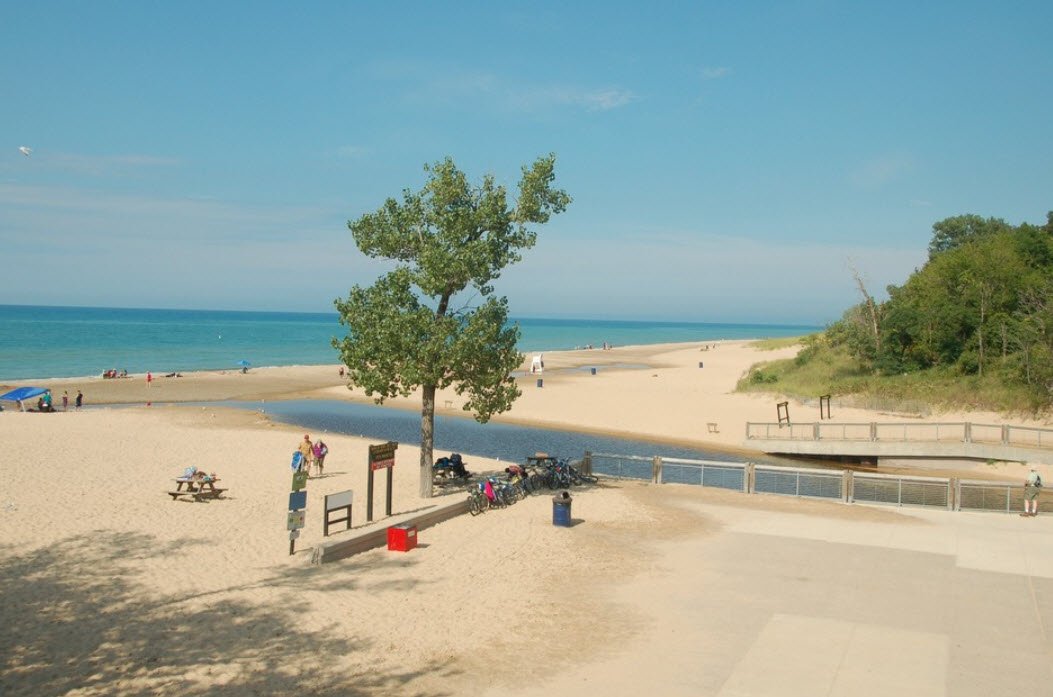 It is nestled within Indiana Dunes National Park, providing a peaceful, less-commercialized experience with natural dunes and secluded beach pockets. Visitors can enjoy easy parking and scenic views of the Chicago skyline from the beach.