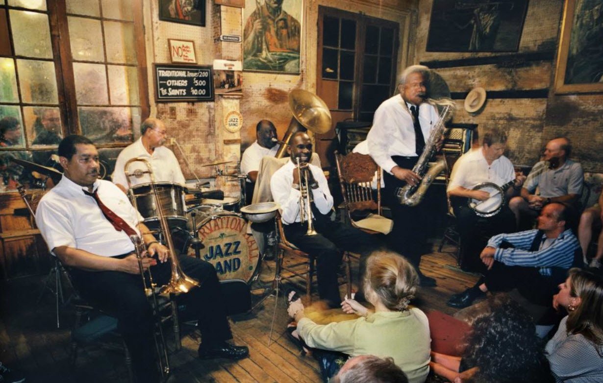 It became a dedicated space for traditional New Orleans jazz after Borenstein handed over management to Bill Russell, Ken Grayson Mills, and Barbara Reid, who transformed it into a jazz hall. The building is one of the few remaining structures from the early 19th century in the area, with a simple, intimate interior that fosters close-up performances by local jazz masters.