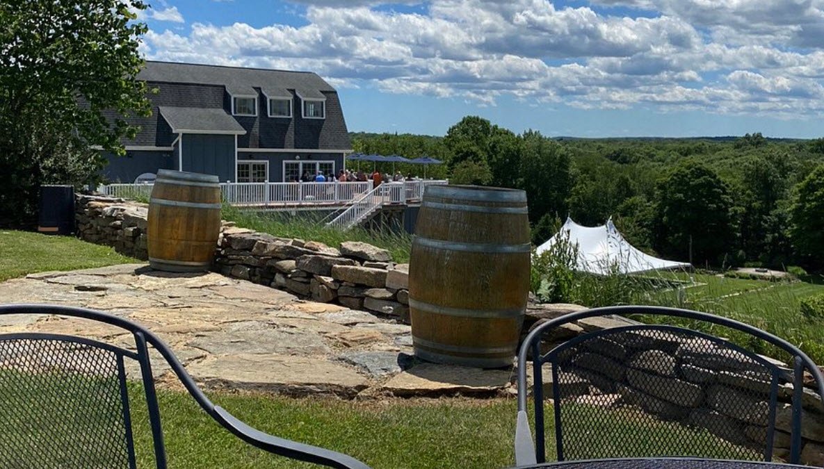 The vineyard cultivates around six planted acres with varietals such as Cabernet Franc, Riesling, Triaminette, Vidal Blanc, Gruner Veltliner, and Baco Noir. Visitors can enjoy wine tastings in a traditional New England farm setting, making it an ideal venue for celebrations, weddings, and relaxing get-togethers.