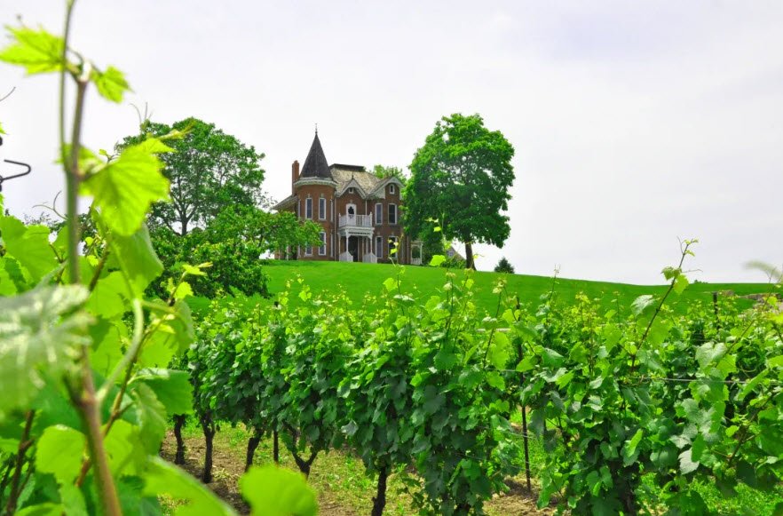 Put-in-Bay Winery on South Bass Island in Put-in-Bay, Ohio, opened in May 2009 inside the historic Victorian Italianate Doller Mansion, once home to island entrepreneur Valentine Doller, offering scenic Lake Erie lakefront views and a relaxed atmosphere amid the area's long wine-making tradition that began in the 1850s with vineyards covering hundreds of acres for varieties like Concord and Catawba.