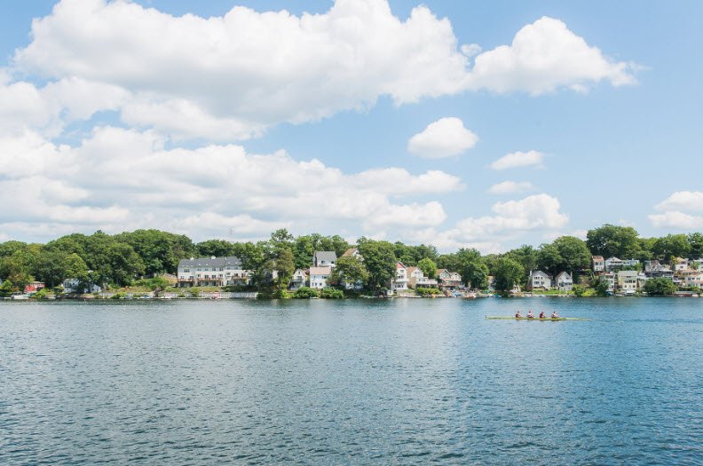 Regatta Point hosts an internationally known 2,000-meter rowing course for regattas, plus facilities for swimming, sailing, picnicking, fishing, and non-motorized boating amid scenic waterfront views. Lake Park offers a lifeguarded sandy beach, tennis courts, athletic fields, shaded picnic areas with grills, restrooms, showers, and walking paths, making it a popular urban family spot near Route 9.