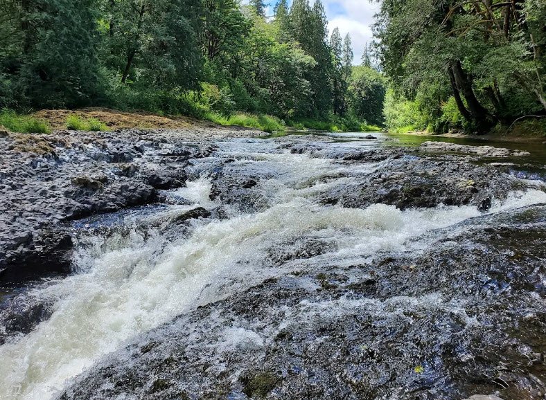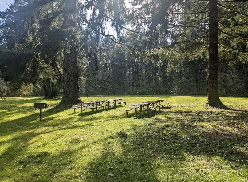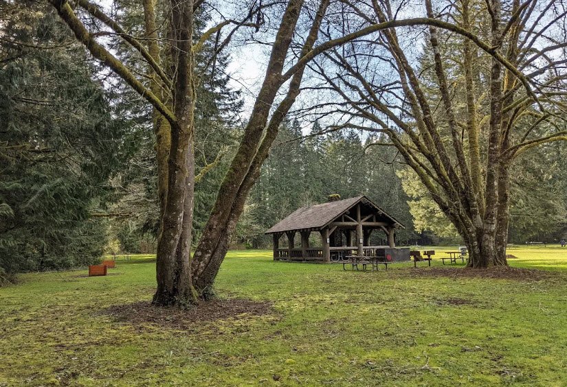 It features a scenic 5-foot waterfall formed by ancient basalt rock, 3,900 feet of river shoreline, and some of the last old-growth Douglas fir, hemlock, and cedar trees in the Chehalis Valley amid a Civilian Conservation Corps-built landscape from 1935. The park offers camping, 3 miles of easy hiking trails like the Towering Timber Trail and Oxalis Loop, fishing, swimming, and access to the Willapa Hills Trail, with modern restrooms but some flood damage history.