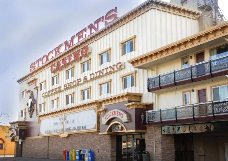 It features 133 non-smoking rooms and suites with modern amenities including free WiFi, mini-fridges, microwaves, HD TVs, and private bathrooms, alongside an on-site 8,000-square-foot casino with 150 slots, 10 gaming tables, a VIP room, race and sportsbook, and Stockmens Coffee Shop serving free cooked-to-order breakfast plus American cuisine all day.