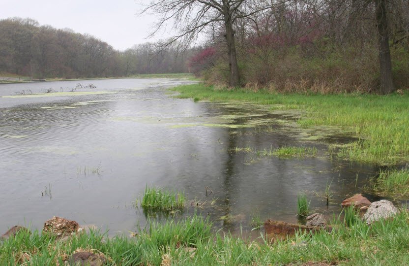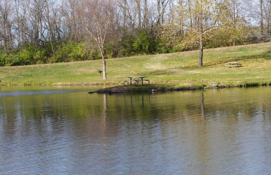 Visitors enjoy unsupervised swimming beach, picnic shelters, 4 miles of hiking/biking trails through hardwood hills and prairies, birdwatching, and adjacent hunting areas for turkey, deer, and small game amid serene farm-country tranquility.