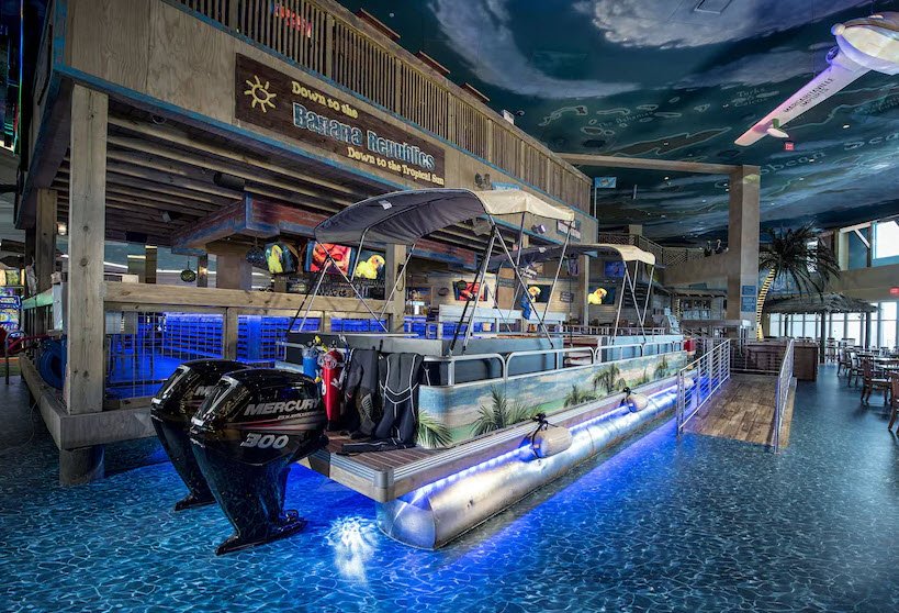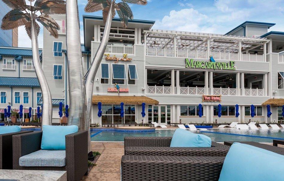 The resort includes five restaurants offering a variety of dining options, a full-service spa and salon, and a 2,500-seat Paradise Cove Theater that hosts live entertainment and sporting events. Additional amenities include a tropical-themed outdoor pool with a swim-up bar, multiple lounges, retail shops, convention and meeting spaces, and free airport shuttle service.