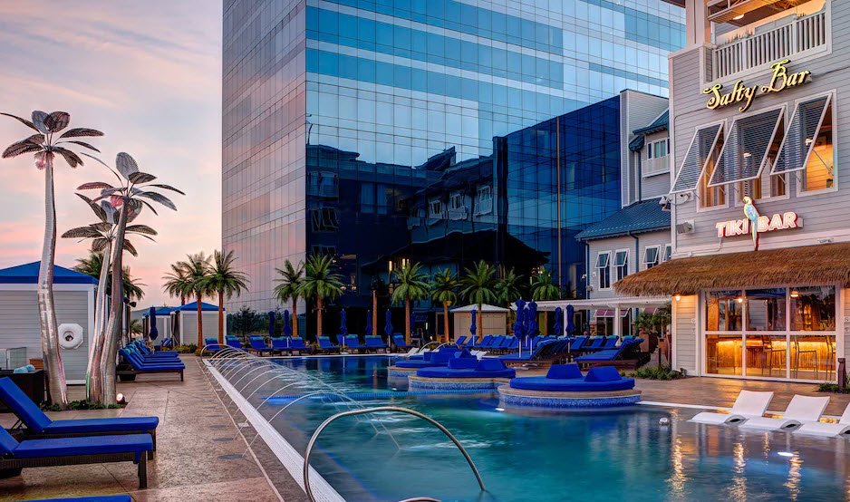 River Spirit Casino Resort in Tulsa, Oklahoma, is a tropical-themed entertainment complex featuring a 483-room luxury hotel and one of the largest gaming floors in the state with over 3,000 slot machines, numerous poker tables, and table games.