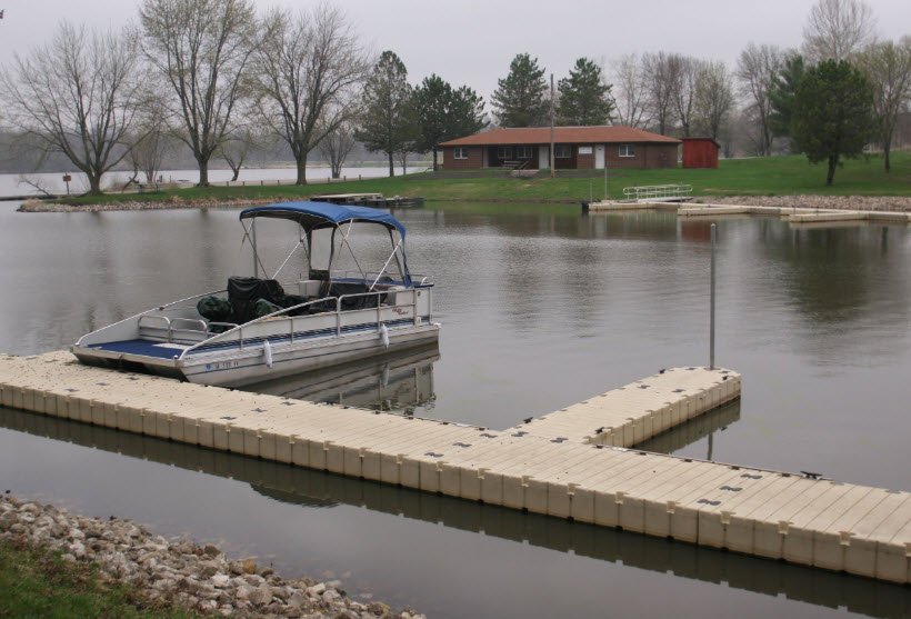 Rock Creek State Park spans 1,697 acres in Jasper County near Kellogg, central Iowa, USA, dedicated in 1952 around a 602-acre lake popular for boating with multiple ramps and docks, shoreline fishing crappie, bluegill, largemouth bass, walleye, and channel catfish, plus an unsupervised swimming beach with concessions.