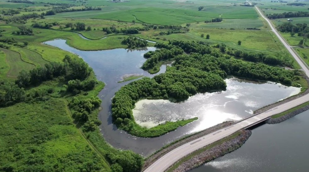 Restored prairies with 45 native grasses and forbs support birdwatching, while catch basins address siltation from row cropping to preserve water quality amid growing popularity.