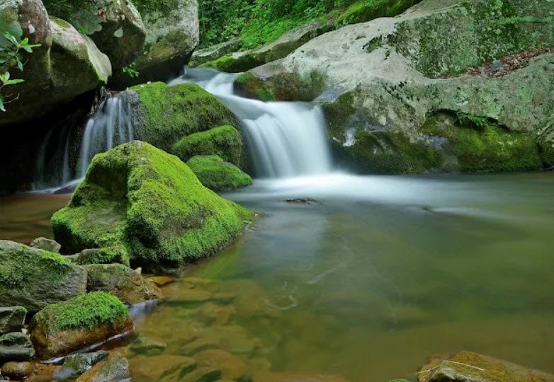 Nestled in the rugged Blue Ridge Mountains with Appalachian Trail access, it features steep terrain, mossy boulders, deep trout streams like Rocky Fork Creek, waterfalls, cliffs, swimming holes, and biologically diverse forests ideal for hiking 19 miles of trails, mountain biking, rock climbing, fishing, hunting, and backcountry camping.