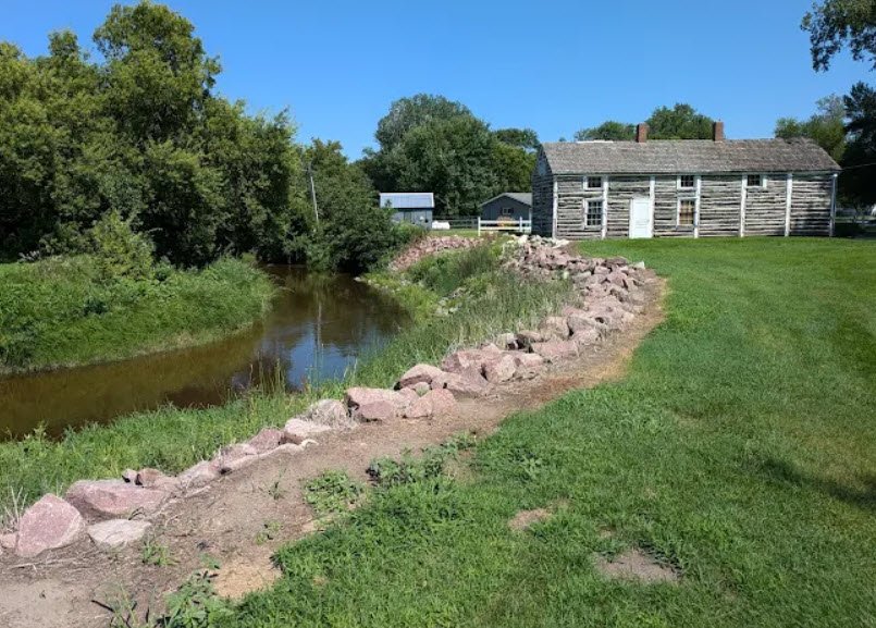 The site offers picnic areas, a vault toilet, and summer-weekend access to the cabin via the Browns Valley Historical Society, with interpretive markers nearby recounting U.S.-Dakota War events and Brown's heroism amid the rural Traverse County landscape.
