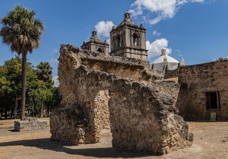 San Antonio Missions National Historical Park in Texas preserves four of the five Spanish colonial missions established along the San Antonio River in the early 18th century.