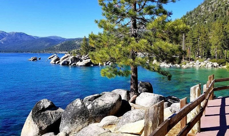 Sand Harbor Beach, located on the northeastern shore of Lake Tahoe in Nevada, is famed for its crystal-clear, cobalt-blue waters and gently sloping sandy beaches framed by impressive granite boulders.