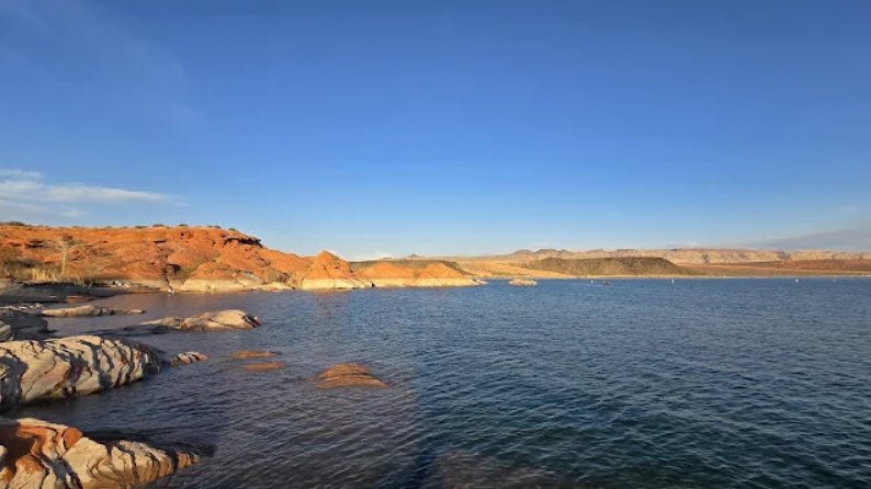 The park includes campgrounds, restrooms with showers, boat ramps, picnic areas, and easy access to nearby attractions such as Zion National Park, all within a rugged desert‑wonderland setting.