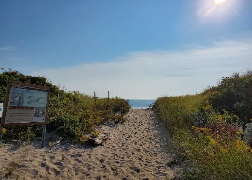 Visitors enjoy calm protected cove waters, stabilized dunes, an observation tower for wildlife viewing, and scenic trails amid erosion-prone sands, though parking is limited and greenhead flies peak in summer.