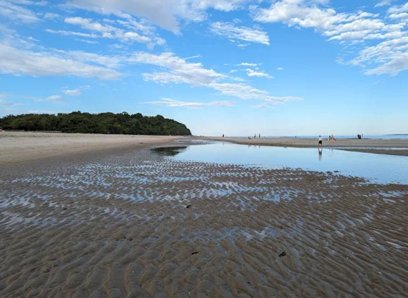 Sandy Point State Reservation spans 77 to 134 acres at the southern tip of Plum Island in Ipswich, Massachusetts, offering a pristine coastal beach ideal for swimming, sunbathing, tide pooling, walking, beach combing, and birdwatching.