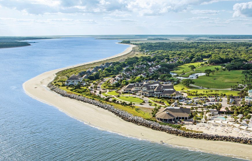 The beach is accessible via nine boardwalks that connect the residential areas with the ocean, providing easy and scenic access for residents and guests. It is well known for spectacular sunrise and sunset views and is a favorite spot for watching dolphins engage in unique strand feeding behavior, usually visible near low tide. The island’s beaches are part of an Audubon International Certified Sustainable Community, emphasizing conservation of the coastal ecosystem, including protected habitats for sea turtles and diverse bird species.