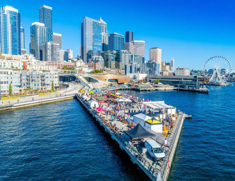 Today, the Seattle Waterfront is a popular destination with attractions like Pike Place Market, the Seattle Aquarium, and open spaces along the water, blending history, commerce, and modern urban design to create a welcoming community space.