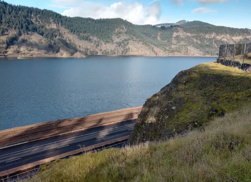 Adjacent to an abandoned section of the Historic Columbia River Highway State Trail, this desolate yet beautiful area supports birdwatching, wildlife viewing, and proximity to whitewater rafting on the Hood and White Salmon Rivers, with no fees or facilities beyond trail access.
