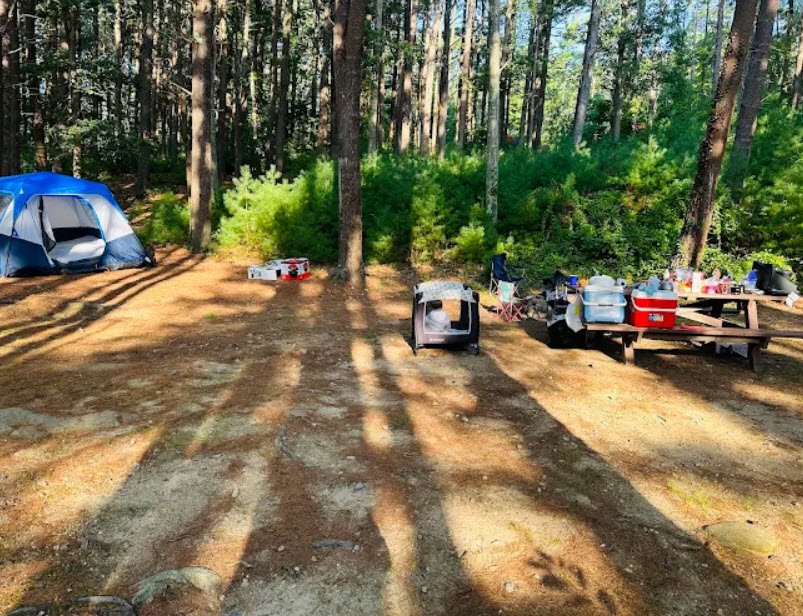 The campground includes two main loops with more than 280 well‑shaded sites suitable for tents, RVs, and a small number of yurts, offering standard amenities such as picnic tables, grills, restrooms, showers, and a dump station. It sits close to the Scusset Beach State Reservation and provides over 15 miles of trails and forest roads for hiking, biking, horseback riding, and cross‑country skiing, making it a quiet, family‑friendly base for exploring Cape Cod’s woods and nearby beaches.