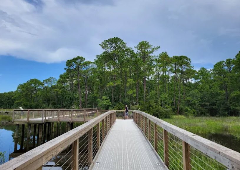 It offers 38 developed campsites, tent areas, picnic spots with pavilions, nature and bike trails, Mississippi's longest marshwalk along LaMotte Bayou, an 18-hole disc golf course, archery range, dog park, playground, boat launch, and birdwatching for over 200 species along the Coastal Birding Trail.