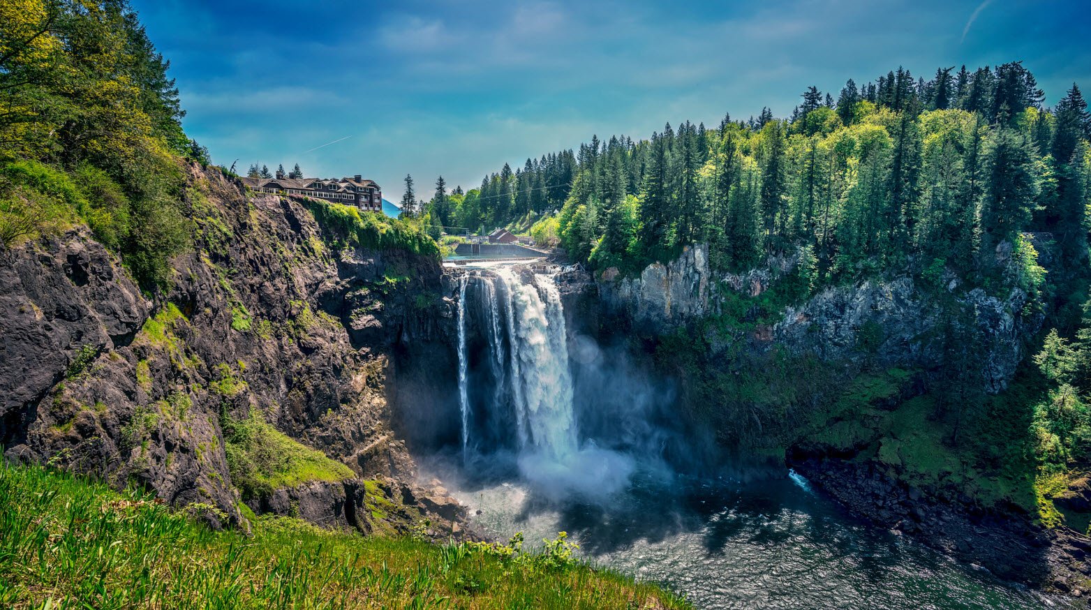 The site features a two-acre park with an observation deck, a gift shop, and the iconic Salish Lodge perched near the top for scenic views. While most of the river's flow is diverted to two hydroelectric plants—one of the first fully underground plants in the world—the falls flow in their full grandeur especially during the rainy season and spring snowmelt, creating powerful water sprays and a breathtaking natural spectacle.