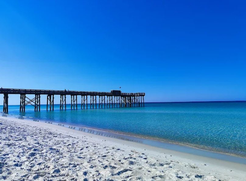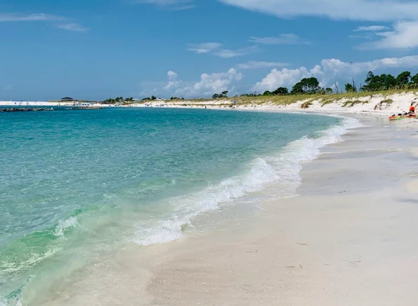 Visitors swim, snorkel, surf, fish from two piers, kayak Grand Lagoon, hike trails like the Heron Pond boardwalk past a turpentine still replica, bike, birdwatch, picnic, and camp at over 200 sites; open daily from 8 a.m. to sunset with reservations advised. White sands and turquoise Gulf waters highlight the park's iconic beachfront allure.