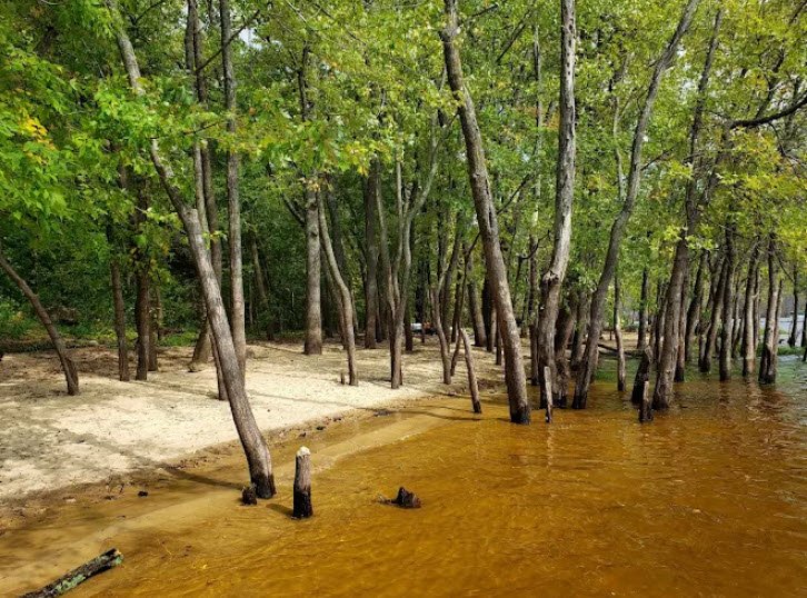 Visitors enjoy scenic overlooks, a natural spring, modernized amenities like paved walkways and restrooms added in 1969, and forested tranquility blending history with river views, though original boom structures have vanished.