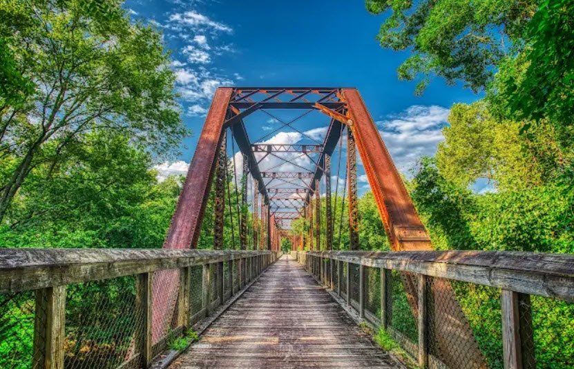 Key features include preserved Confederate earthworks at Fort Hill with its bomb-proof magazine, a 600-foot iron bridge replica of the original wooden structure, walking trails through the battlefield and wetlands, a visitor center with exhibits, and ranger programs highlighting the outnumbered defenders' victory that delayed the Union raid.