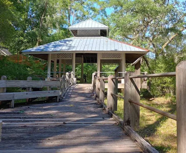 The park blends natural beauty with folk heritage via pioneer craft demonstrations at a cultural village, White Sulphur Spring house, and events like the annual Florida Folk Festival over Memorial Day weekend, alongside hiking and biking trails through scenic North Florida bluffs, canoeing, wildlife viewing, camping at 45 full-service sites, and cabin rentals.
