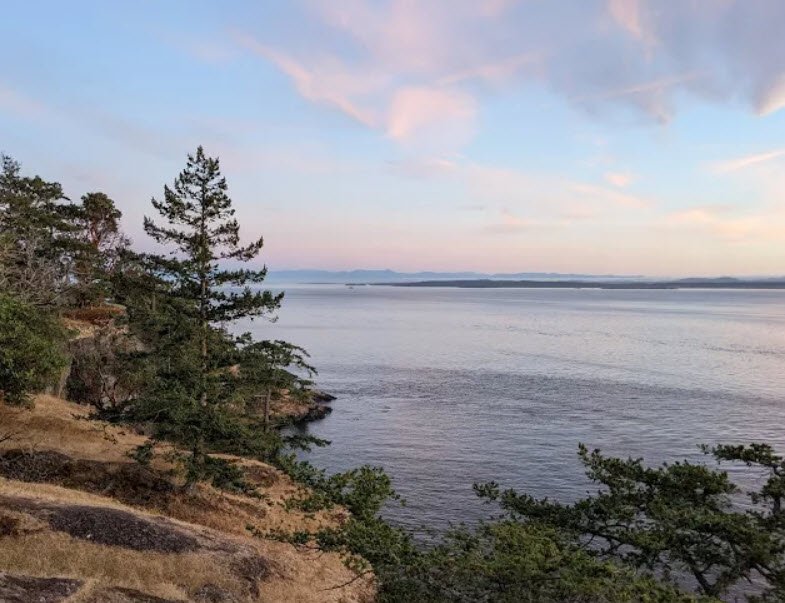 Visitors enjoy its serene blue coves, rocky beaches, and proximity to Spieden Island while noting strong currents and the need for tide awareness.