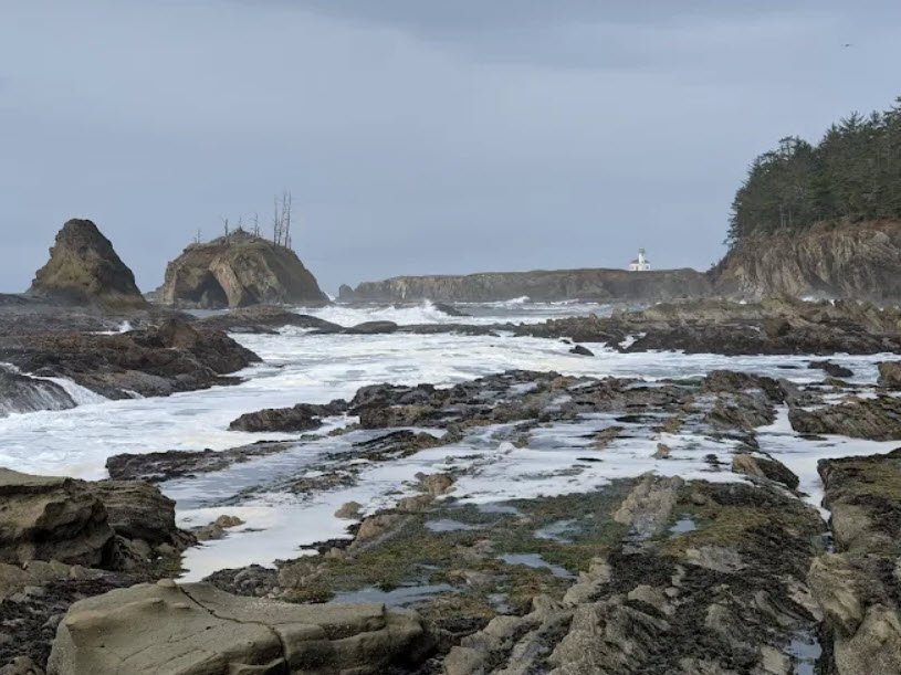 A network of hiking trails connects it to neighboring Shore Acres and Cape Arago State Parks through pristine coastal forests, wildflower meadows, and clifftop viewpoints of Gregory Point and the Cape Arago Lighthouse, drawing over a million visitors annually for its serene beauty and family-friendly amenities.