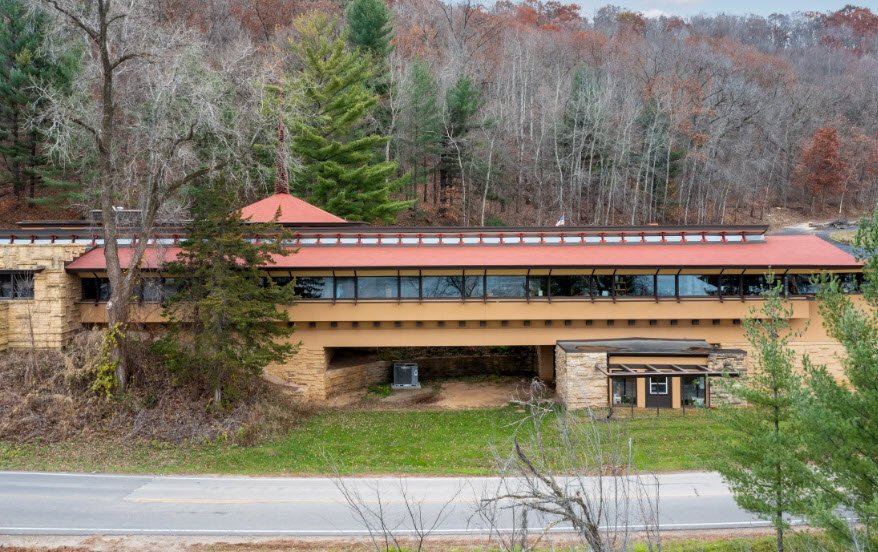 The Taliesin Preservation: Frank Lloyd Wright Visitor Center in Spring Green, Wisconsin, serves as a gateway to exploring the Taliesin estate, the home and studio of the famous architect Frank Lloyd Wright.