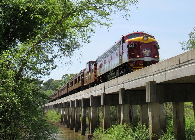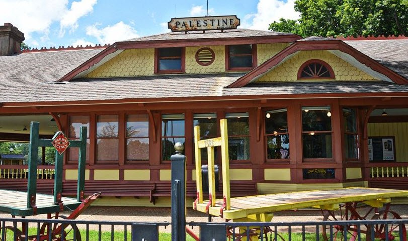 The railroad was originally built in 1883 by Texas prison inmates to transport timber and ore from the penitentiary at Rusk. The Rusk Depot itself is a beautiful rock building that complements the railroad's history as an industrial line. In 1972, the area was converted into a state park to operate tourist excursions along the 25-mile route from Rusk to Palestine.