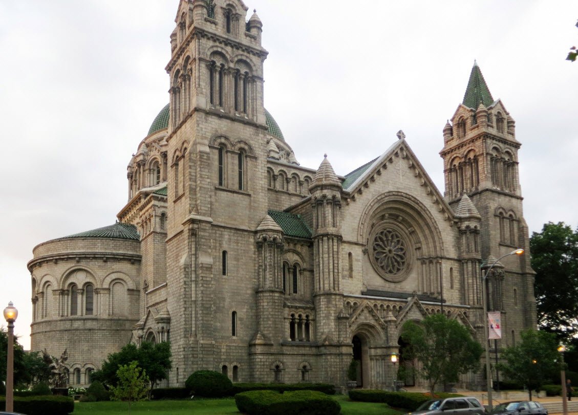 The Cathedral Basilica of St. Louis, Missouri, is a stunning example of Romanesque and Byzantine architecture, designed by the firm Barnett, Haynes & Barnett with construction beginning in 1907 and completion of the main structure in 1914.
