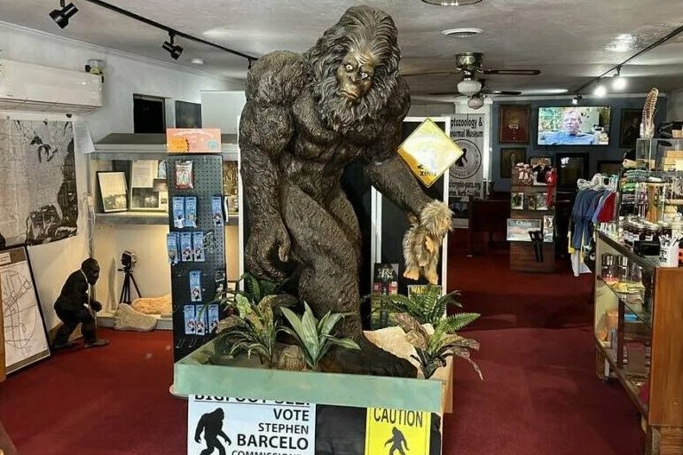 The Cryptozoology & Paranormal Museum in Littleton, North Carolina, is a quirky attraction dedicated to unexplained creatures like Bigfoot and paranormal phenomena, featuring Bigfoot footprint casts, haunted dolls, and ghost-hunting tools such as K-II meters for visitors to detect activity.