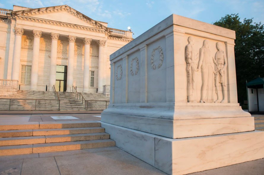 Established in 1921, it initially honored an unknown soldier from World War I, symbolizing all unidentified servicemen and women. The tomb features a striking white marble sarcophagus adorned with carvings representing Peace, Victory, and Valor, and the inscription reads, “Here rests in honored glory an American soldier known but to God.”