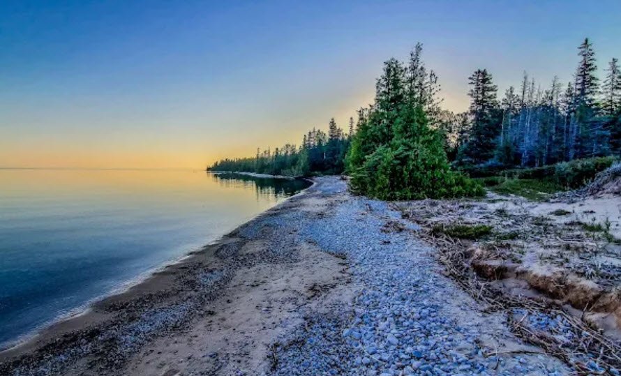 The park is mostly undeveloped, with a mix of second‑growth forest, sand dunes, marshes, limestone cobble beaches, and shallow lakes that create a rugged, quiet landscape suited to hikers, birdwatchers, and wildlife enthusiasts. Visitors can use about six miles of rustic trails for hiking, cross‑country skiing, and, in winter.