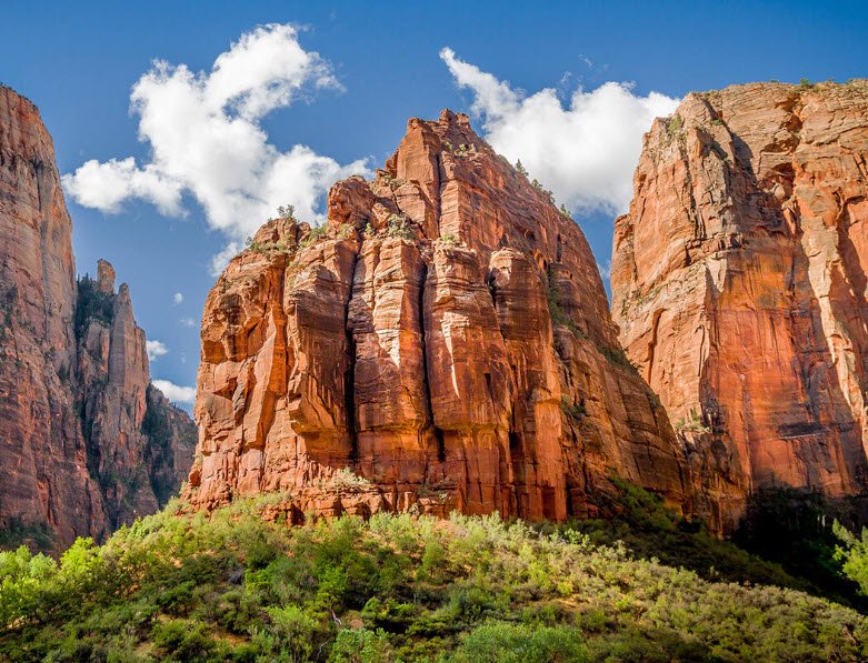 Named in 1916 by minister Frederick Vining Fisher after the biblical figures Abraham, Isaac, and Jacob, these iconic peaks dominate the landscape with Abraham Peak being the tallest. The monoliths are part of the scenic Court of the Patriarchs, a cliff formation along the south face that also includes the nearby Mount Moroni.